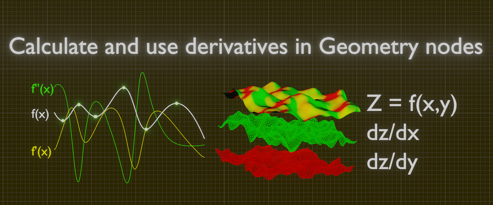 - Node setup to compute and graph partial derivatives over a mesh grid with the geometry nodes setup